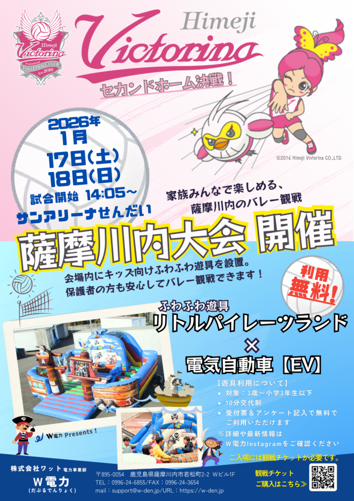 ヴィクトリーナ姫路薩摩川内大会の観戦チケットを抽選で各日20名様にプレゼントいたします!!